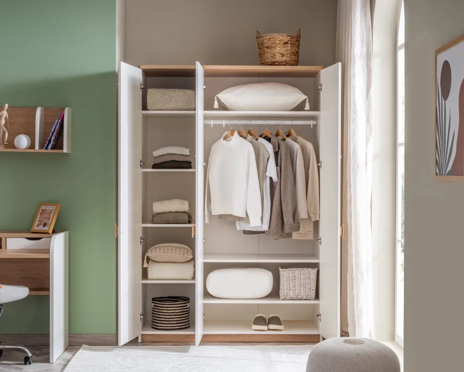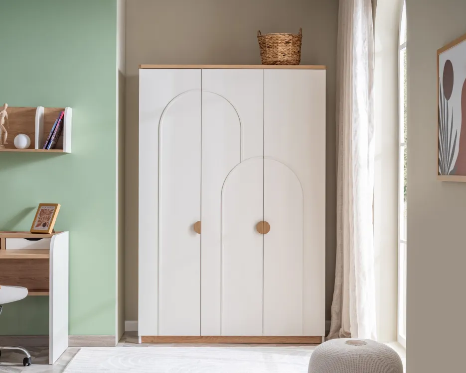 Le Bohem 3 portes armoire de Newjoy est une armoire moderne conçue pour les chambres d’enfants et de jeunes. Elle fait partie de la collection Bohem, reconnue pour son style chaleureux, naturel et contemporain.
