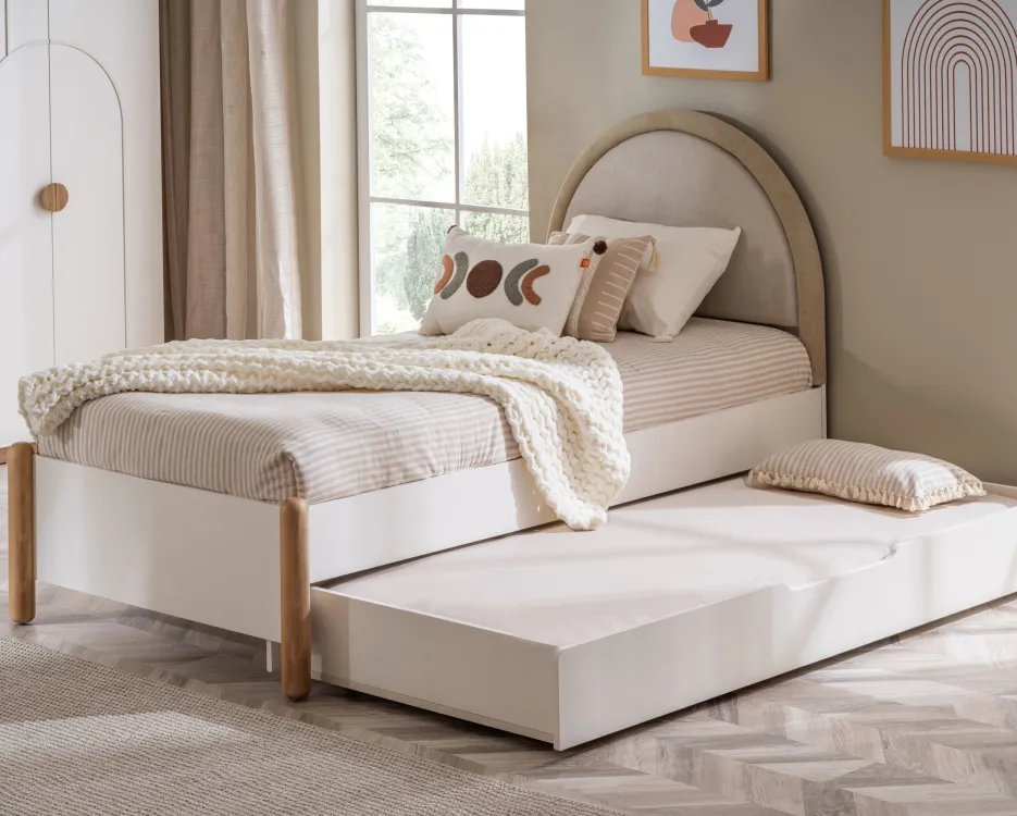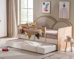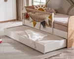 Ce modèle “yavru karyola” (lit gigogne / lit auxiliaire) est idéal pour optimiser l’espace dans la chambre tout en offrant une solution de couchage supplémentaire pratique et confortable.